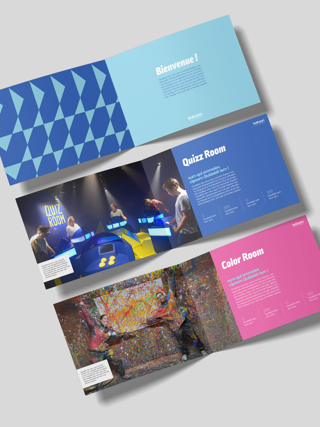 Kalayan, en quelques mots, ce sont des expériences immersives, ludiques et collaboratives pour tous, familles, amis, entreprises : escape game, quizz room, color Room…