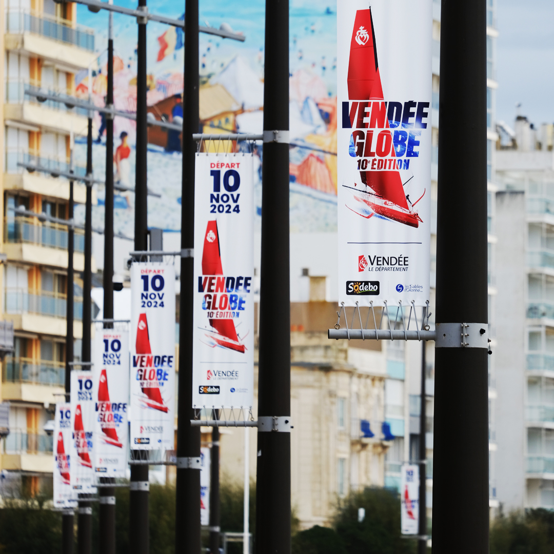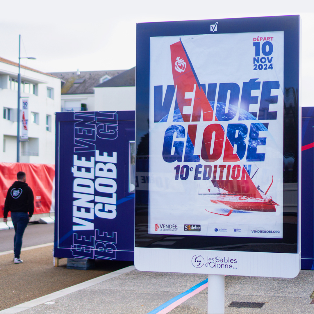 Création de l’identité visuelle du Vendée Globe 2024. Une identité visuelle forte, cohérente et reconnaissable, capable de refléter l’esprit du Vendée Globe : univers maritime, aventure, défi humain et technologique. Le branding a été conçu pour être déployé sur une variété de supports imprimés ou digitaux et notamment l’habillage du village de départ aux Sables d’Olonne, la signalétique, mais aussi les goodies…