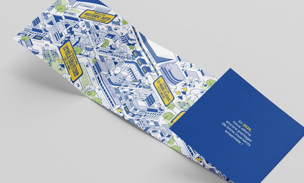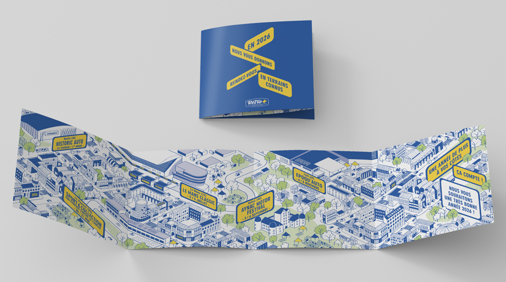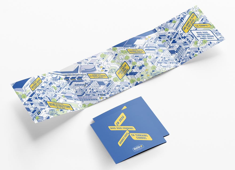 Une nouvelle création pour l’assureur Rétro+ ! Pour présenter ses vœux, Rétro+ donne rendez-vous à ses clients et partenaires avec une carte illustrée mettant en scène les futurs temps forts Rétro+ de l’année 2026 !